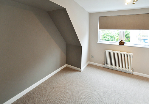 The Bedroom has been tastefully decorated with Dulux Emulsion Paint, in nice neutral colours ‘malt chocolate’ and a feature wall in ‘potters wheel’. The room has been fitted with medium height Skirting Boards, in a chamfered profile and finished with contrasting white Satinwood Paint. Like Bedroom 1, the floor has been covered with a darker beige flecked Berber Loop Carpet, a hard wearing Carpet which is practical and adds both warmth and comfort to the room. The Berber Loop Carpet has been laid on top of a high quality 8mm PU Luxury Carpet Underlay to provide additional comfort underfoot. It also has the added benefits of a Tog Rating of 2.18 and an Impact Sound Reduction of 32db.
