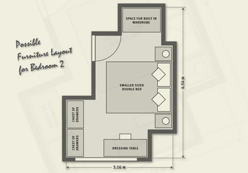Bedroom 2 is a a bright south facing room, measuring approximately 3.16 meters x 4.54 meters or 10.4 feet x 14.9 feet, at the widest points. For an alternative use, Bedroom 2 would also make an excellent room for a Home Office.