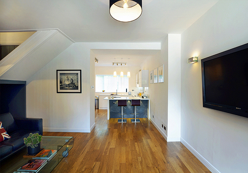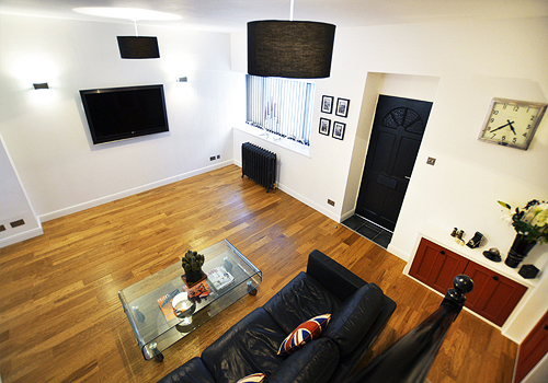 The space has been painted with a mixture of high quality Crown and Dulux Emulsion and Satinwood paints, in a high contrasting palette of white, grey and black, along with small accents picked out in a velvety deep red, all of which create a nice contemporary look.