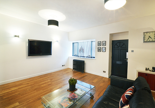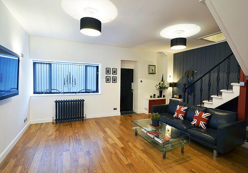 Attention has been paid to every minor detail and this is evident throughout, from the various brushed steel sockets, light switches and tv point to the art deco, ‘cinema style’ wall lights, trendy drum pendant ceiling lights mounted on ornate ceiling roses and the contrasting blinds, all of which are included in the sale.